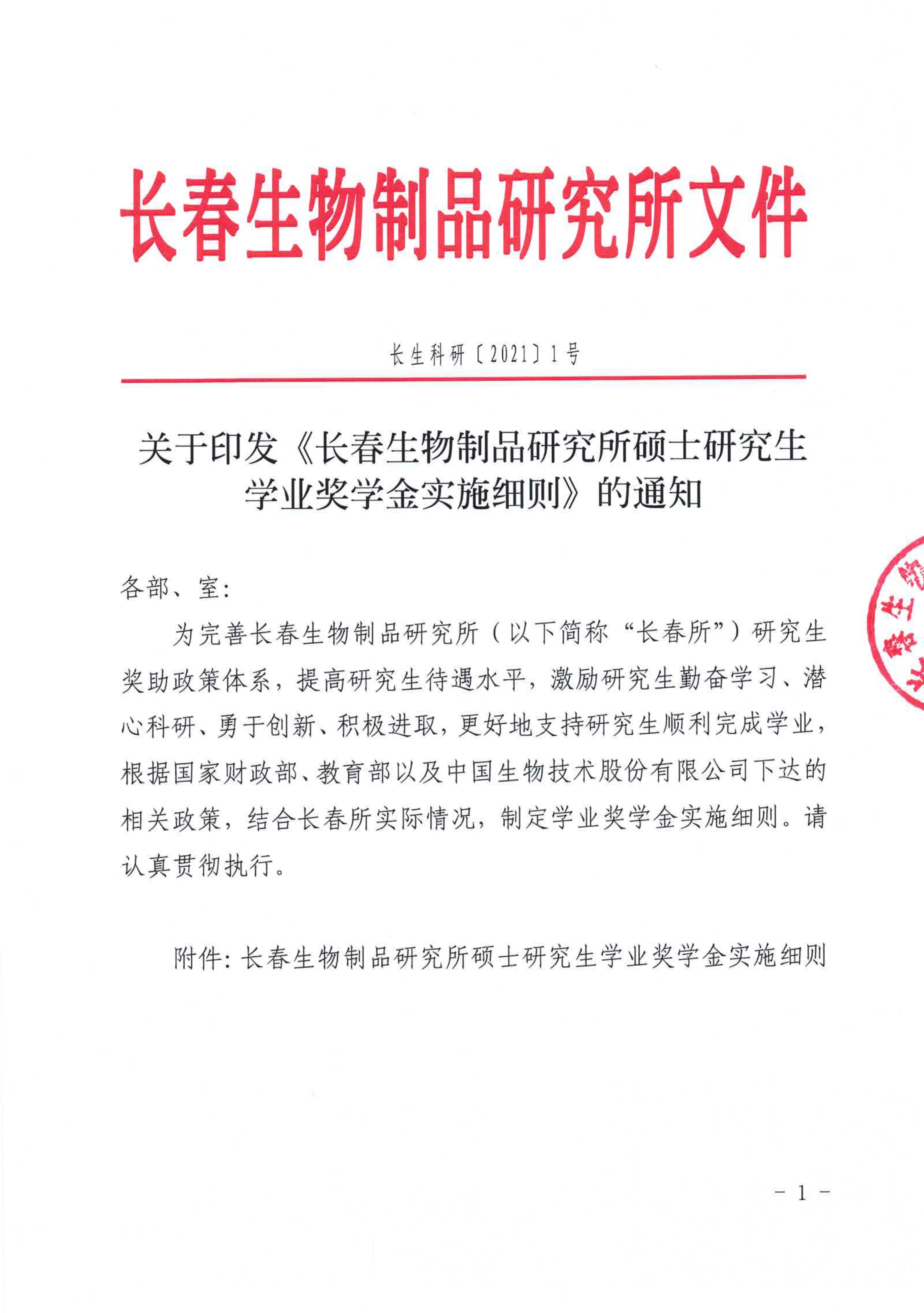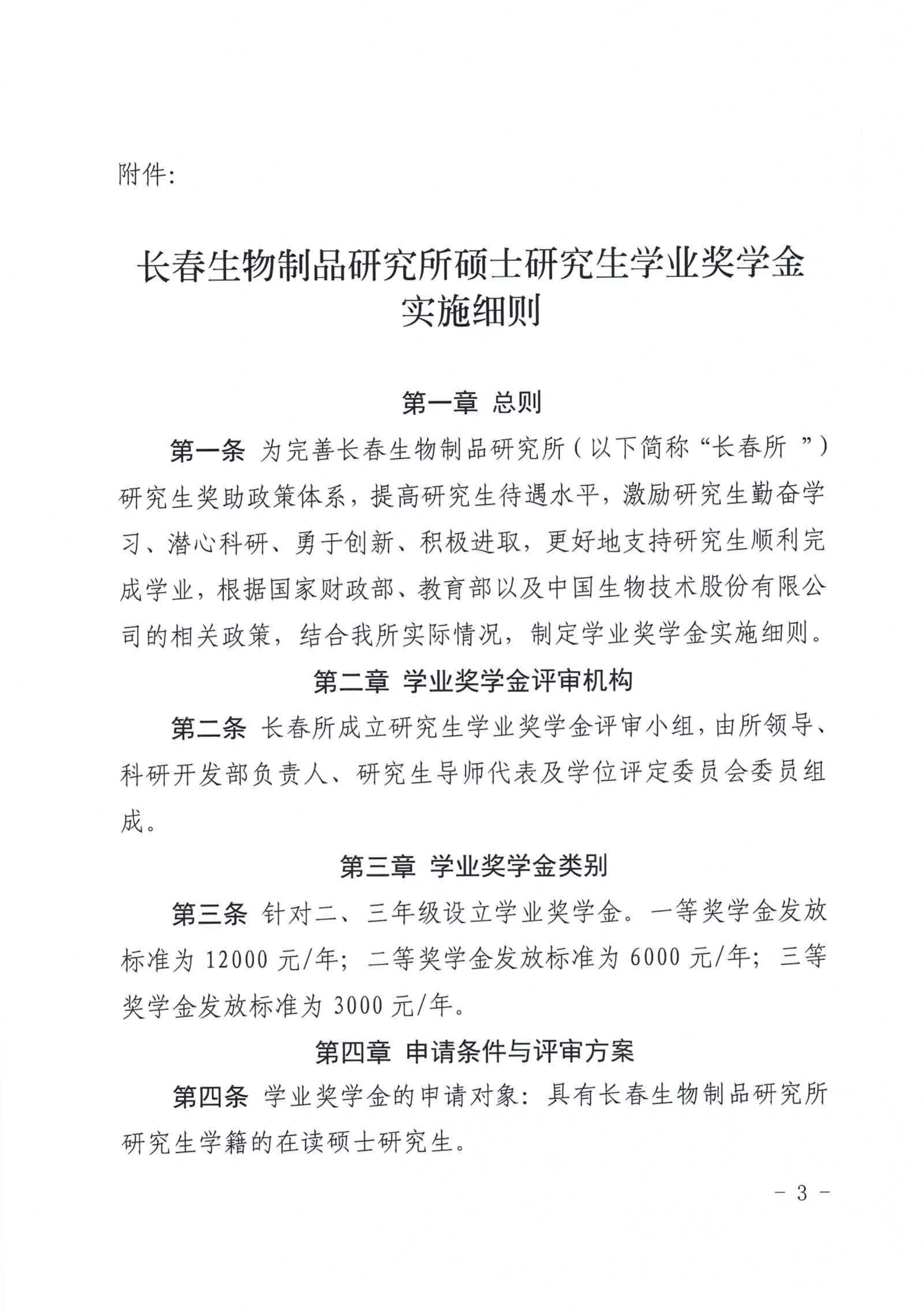 长春生物制品研究所硕士研究生学业奖学金实施细则